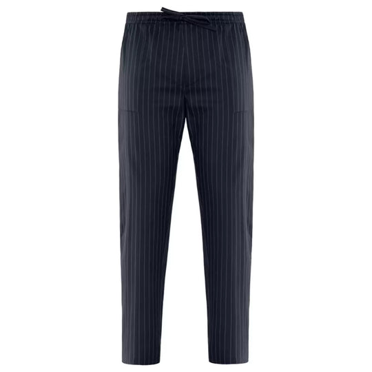 Pantalone dalla vestibilità regular e taglio trendy, realizzato in elegante tessuto gessato 70% cotone 30% poliestere, dalla mano morbida. Proposto in due varianti: fondo nero con riga grigia e fondo grigio con riga nera. Fascione con...Prezzo regolare €20,65 -